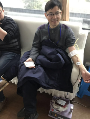 “小湯,今天你又來啦,這次可不能再暈倒喔”,正坐在椅子上采血的我見到本部門的小湯進(jìn)來檢查血樣就與他開玩笑,小湯也不示弱“去年是第一次,沒有經(jīng)驗(yàn),現(xiàn)在讓我站著獻(xiàn)也沒事”,小湯躺下身子繼續(xù)說“我比較胖,今天抽400CC”,接近目標(biāo)時(shí),小湯的額頭上滲出了些許汗珠,醫(yī)生見狀,忙問“覺得不舒服嗎”,小湯堅(jiān)定回答:“沒事,抽到400CC”。